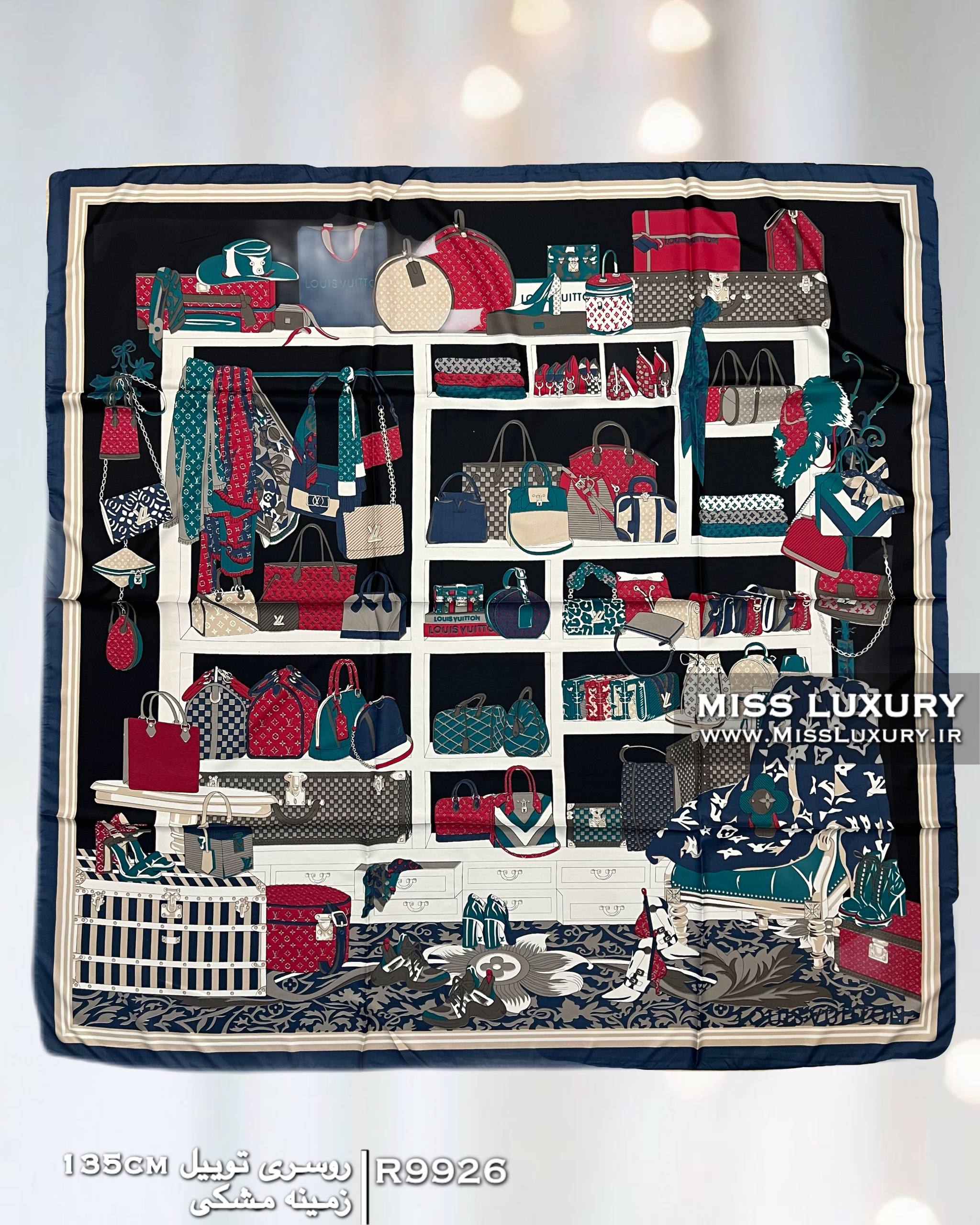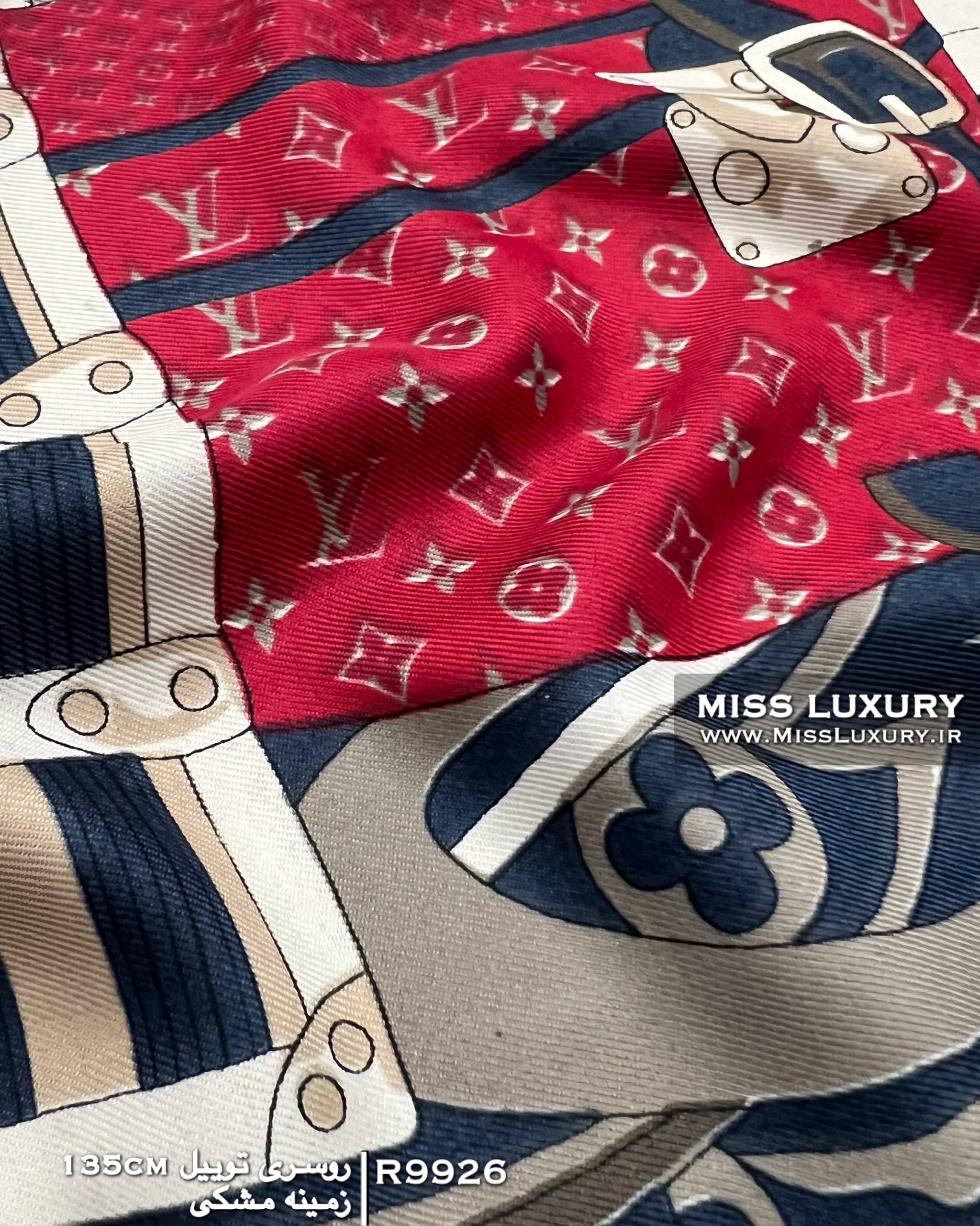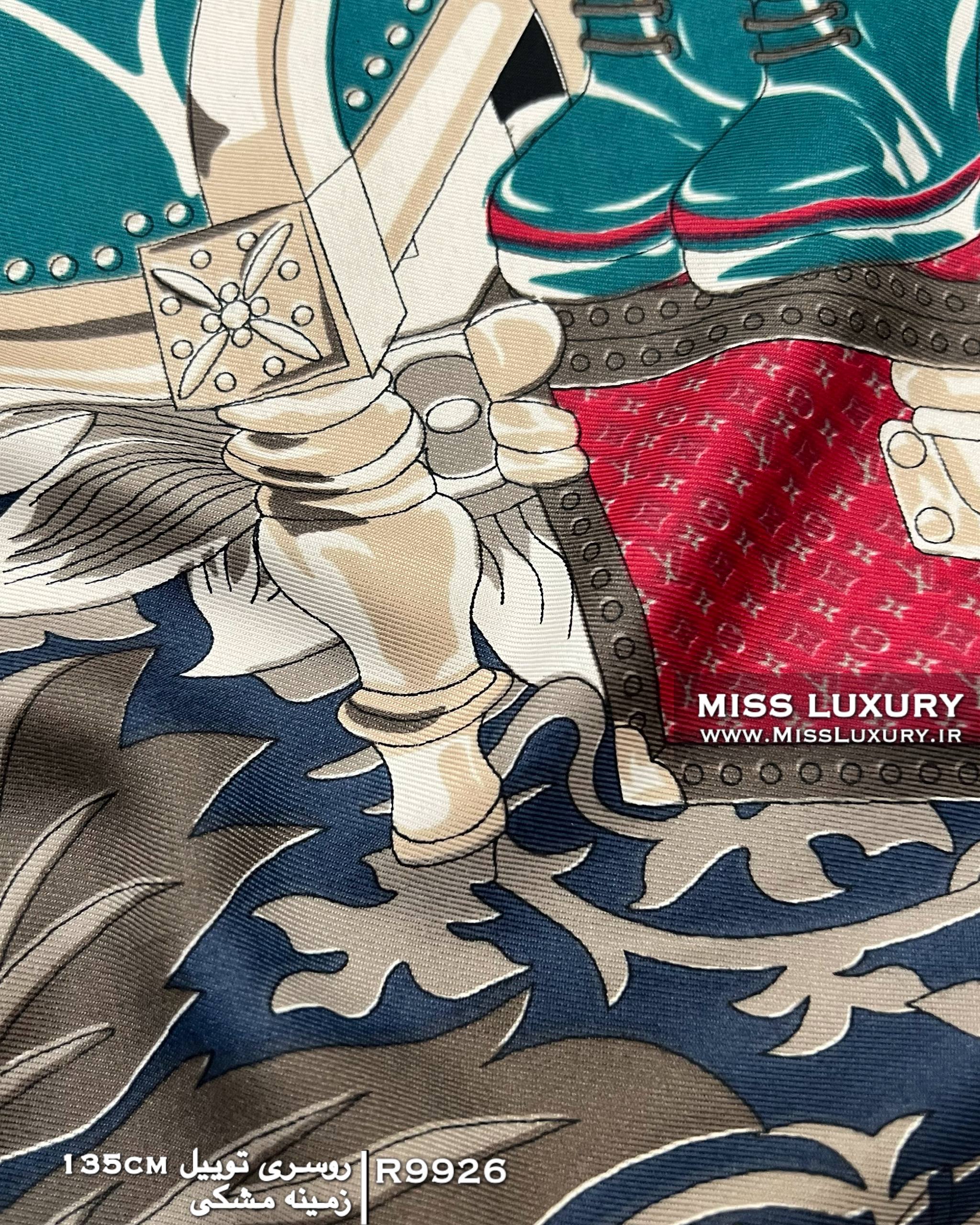روسری توییل ابریشم مشکی R9926 قواره بزرگ این روسری مجلسی یکی از ترندی ترین طرح های این روزها روسری ابریشمی شیک لویی ویتون می باشد.