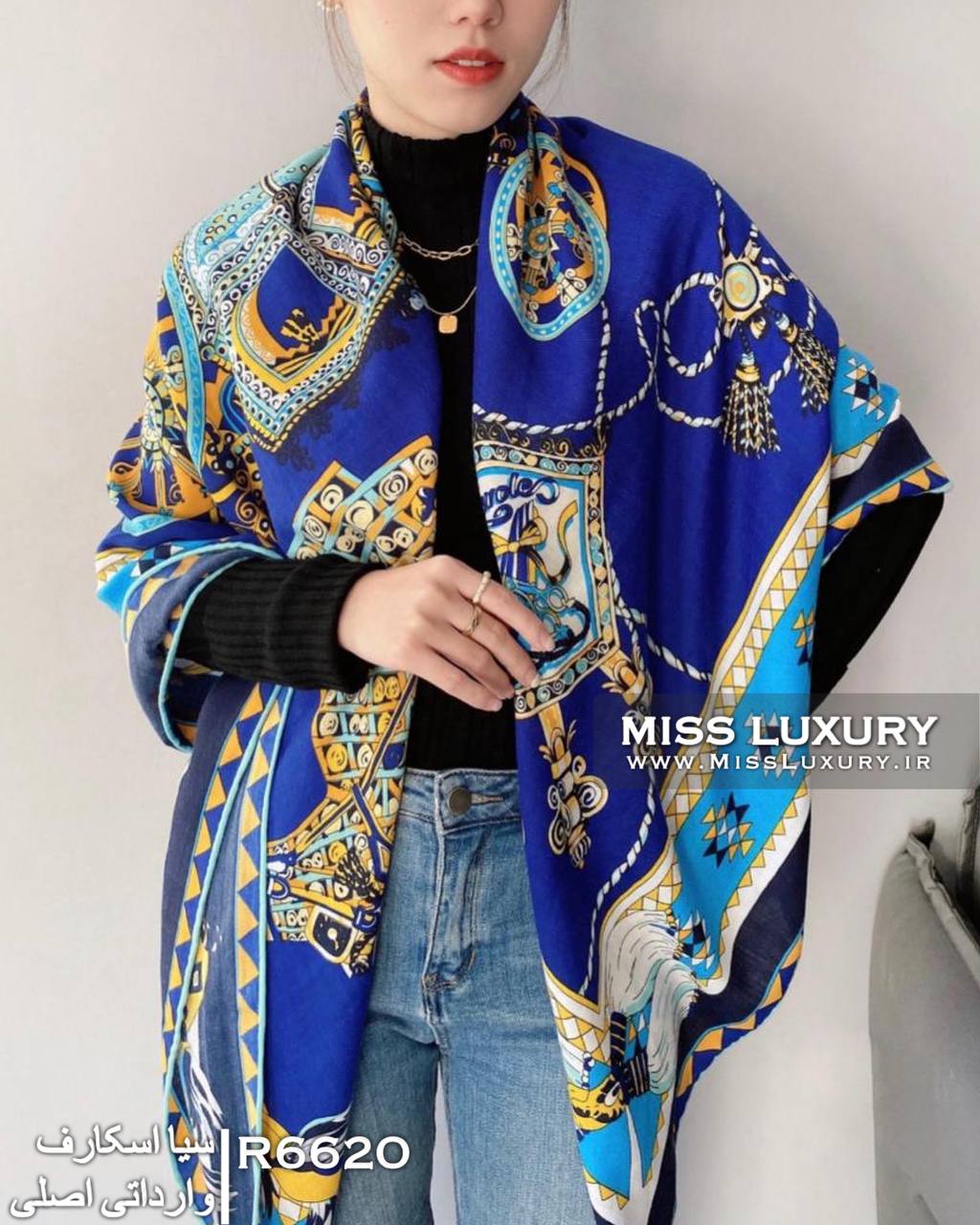 روسری نخی سیا اسکارف هرمس کالاسکه آبی از معروف ترین روسری نخی های وارداتی به حساب میان.