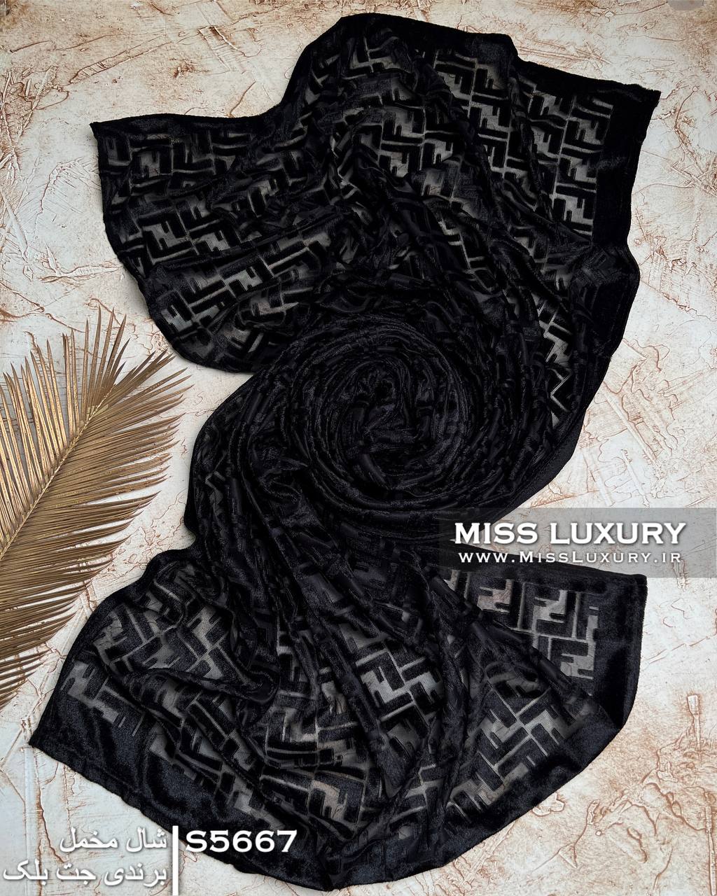 شال حریر و مخمل مشکی اعلا طراحی پترن برند فندی با کیفیت عالی و کاملا مشکی